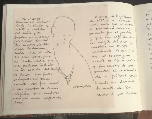 “Creo recordar que fue en la primavera de 1925 cuando paseaba solo por el jardín y sentí que el Universo se estremecía súbitamente. Entonces, un espíritu dorado emergió del suelo y envolvió mi cuerpo convirtiéndolo en oro.