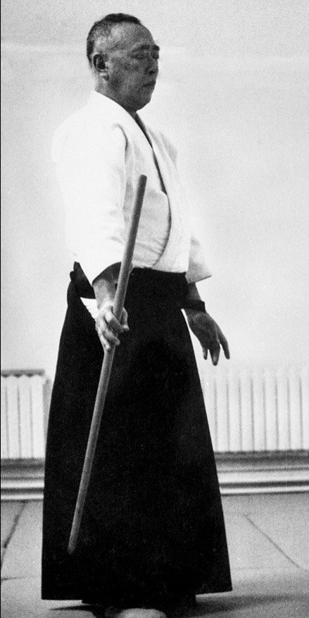 “Se dice que su Aiki le permite proyectar a varios oponentes simultáneamente o levantar cientos de kans (4) fácilmente. En tales ocasiones una deidad marcial, también registrada en el Shinto, mueve el cuerpo físico del Maestro, que se convierte en Ku o vacío”.